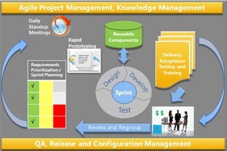We use Agile methodologies, following a continuous delivery model, which allows our teams to respond to change quickly. Our culture of customer collaboration and teamwork ensures higher productivity, higher quality, improved stakeholder satisfaction and reduced time to market.
